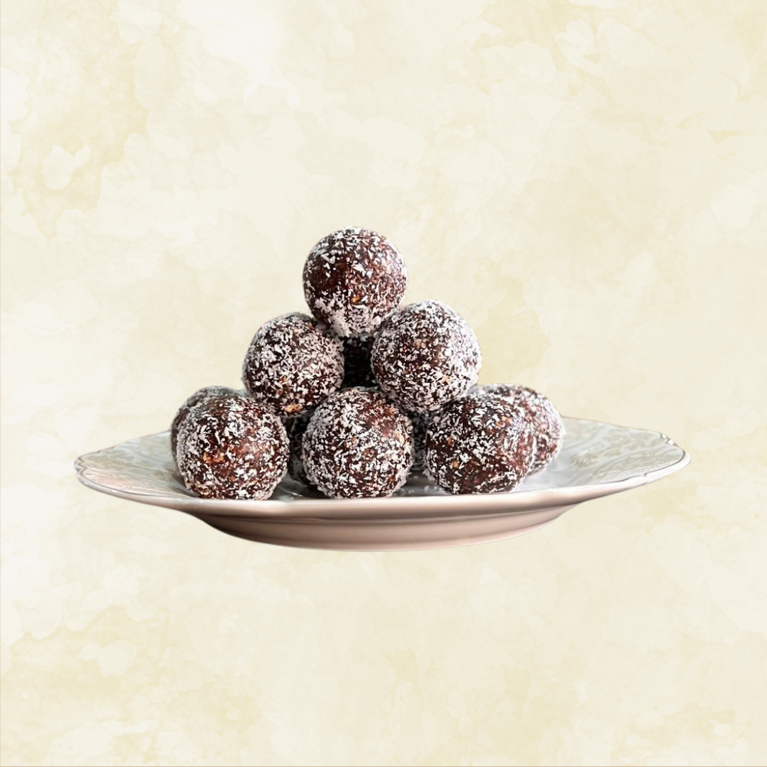 Coconut: Dates, maple syrup, cocoa powder, oats, coconut flakes